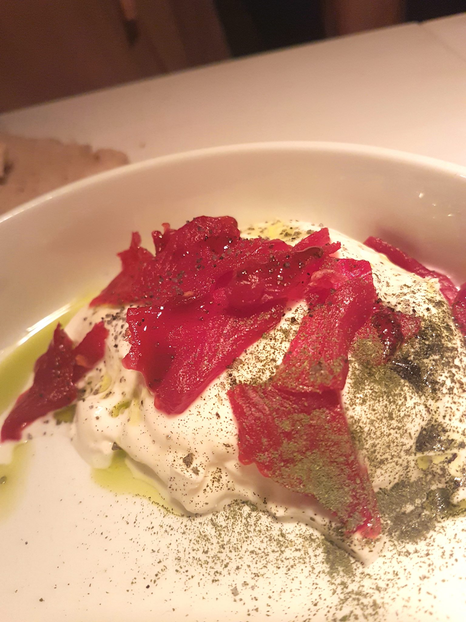 We all loved the buffalo mozzarella with watermelon jerky and mint. Not only did the watermelon look like dried meat but also, had a chewy consistency far removed from what you’d expect of watermelon.