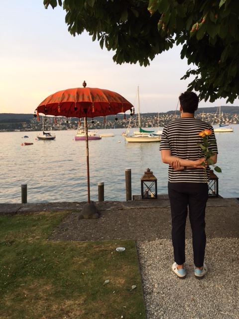 After a really fun and exciting ride, we finally arrived to Villa Hamol am See. What a view from the boat. Everything about the set was so romantic. The tables were placed right at the edge of the lake. The mood was set with candles and a dim light coming through the trees. And to top it off, we each received a Rose from David, our host! Just the perfect setting for a date.